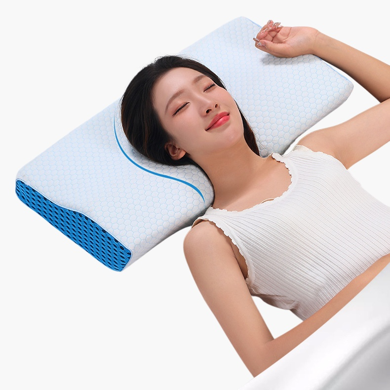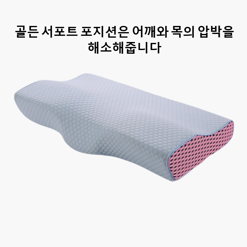 인체공학적 설계로 목과 어깨를 편안하게 지지하는 메모리폼 베개, 통기성 우수, 오랜 사용에도 변형 없이 유지